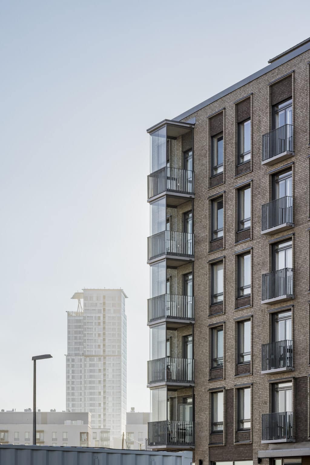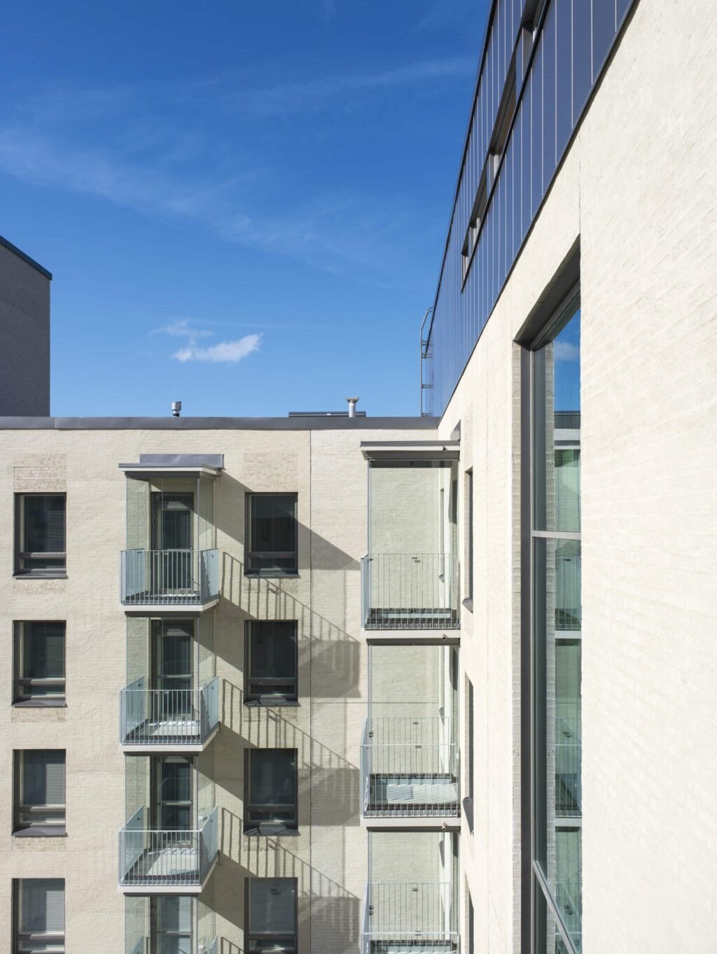 Parvekkeet katujulkisivuilla on tehty ripustettuina ja lasitettuina ulokeparvekkeina sekä leveinä ulokkeellisina ranskalaisina parvekkeina. Yhdistettävyysteeman mukaisesti isommalla asunnolla on parveke ja pienemmällä ranskalainen parveke. Ratkaisulla julkisivuun on saatu kaupunkimaista vaihtelua ja ilmavuutta, ja parvekkeet sijoittuvat osaksi julkisivun teemaa ja rytmitystä.