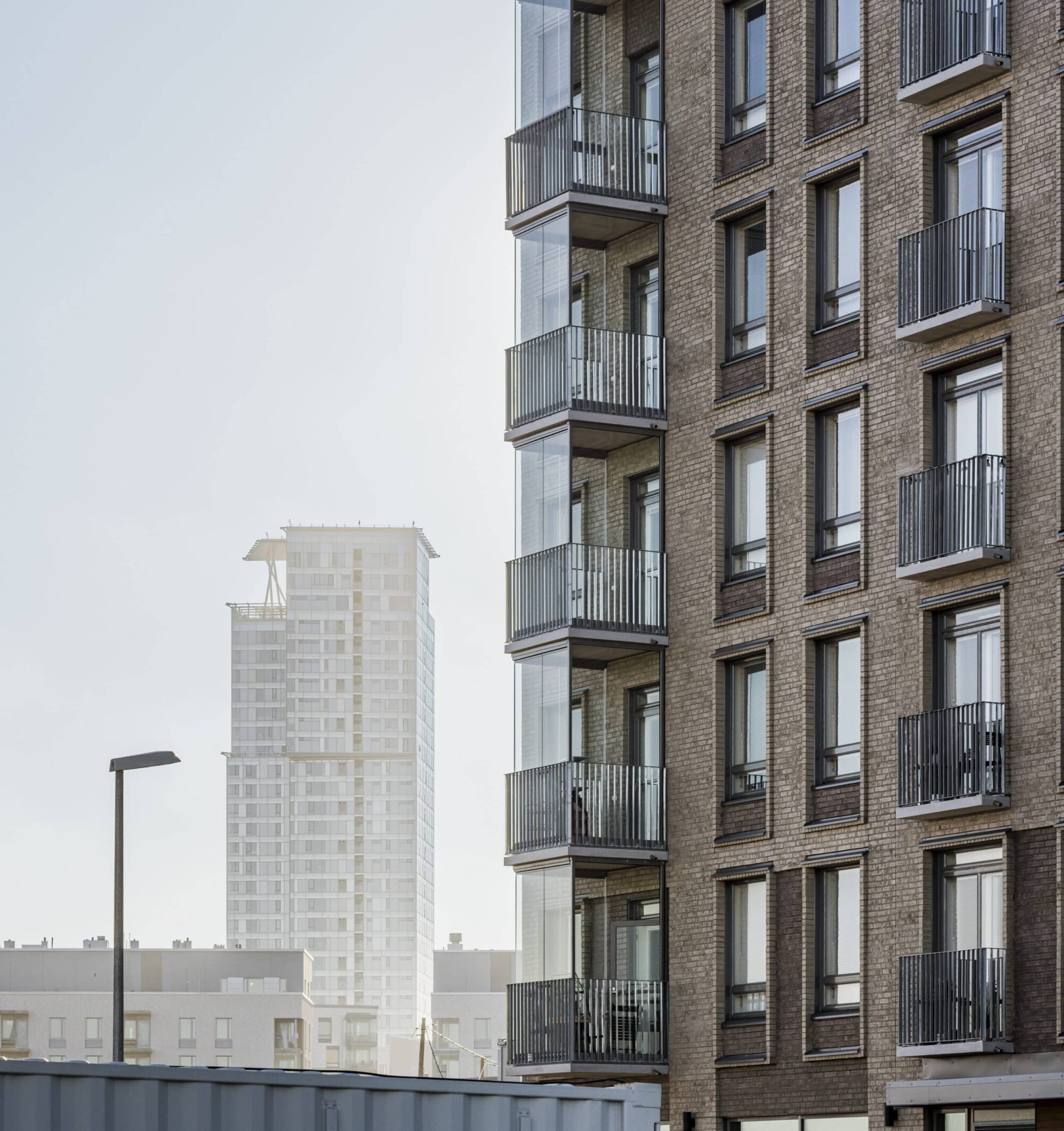 Parvekkeet katujulkisivuilla on tehty ripustettuina ja lasitettuina ulokeparvekkeina sekä leveinä ulokkeellisina ranskalaisina parvekkeina. Yhdistettävyysteeman mukaisesti isommalla asunnolla on parveke ja pienemmällä ranskalainen parveke. Ratkaisulla julkisivuun on saatu kaupunkimaista vaihtelua ja ilmavuutta, ja parvekkeet sijoittuvat osaksi julkisivun teemaa ja rytmitystä.