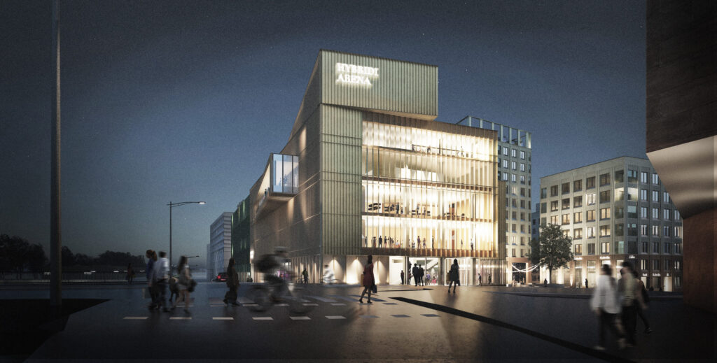 Tapahtumakeskus tarjoaa muuntojoustavia, digitaalisuutta hyödyntäviä tiloja liikuntaan, tapahtumiin ja urheiluun. Se mahdollistaa myös palloilutapahtumat 1000–1500 katsojalle sähköisesti toimivilla katsomoilla. Korttelin autopaikat ja pyöräpaikat keskitetään pysäköintirakennukseen, jonka katolle tulee asuntosaunoja ja piha-alueita. Vehreä kattopiha vähentää melu- ja hiukkaspäästöjen vaikutuksia ja lisää asumisviihtyvyyttä.