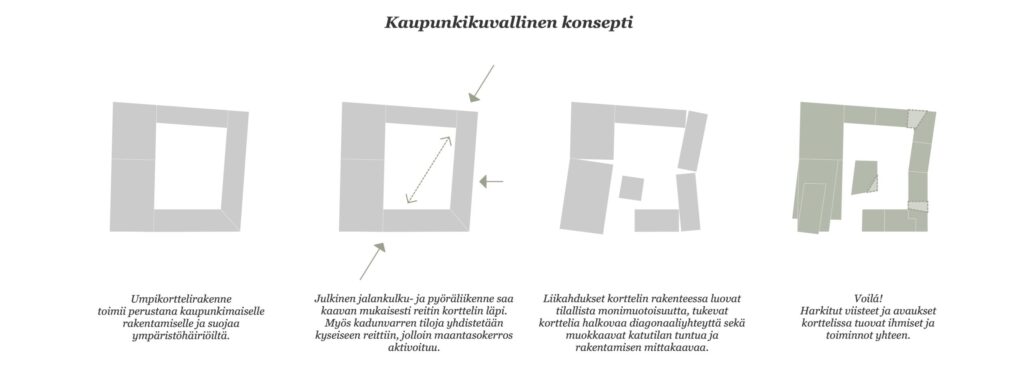 ”Konkaavi”-suunnitelma perustuu asumisen, kevyen liikenteen ja liikunta- sekä tapahtumakeskuksen vuorovaikutukseen. Korttelin lounaisnurkkaan sijoittuva Hybridiarena yhdistää yritystapahtumat, hyvinvoinnin, elämykset ja ravintolamaailman, täydentäen viereisen kauppakeskus Hertsin palveluita. Korttelin halki kulkeva kevyen liikenteen reitti luo urbaania katutilaa ja palvelumahdollisuuksia asuinrakennusten yhteyteen. Reitin ja Hybridiarenan kohtaamispaikalle muodostuu aukio, jota elävöittävät liike-, kahvila- ja ravintolatilat.