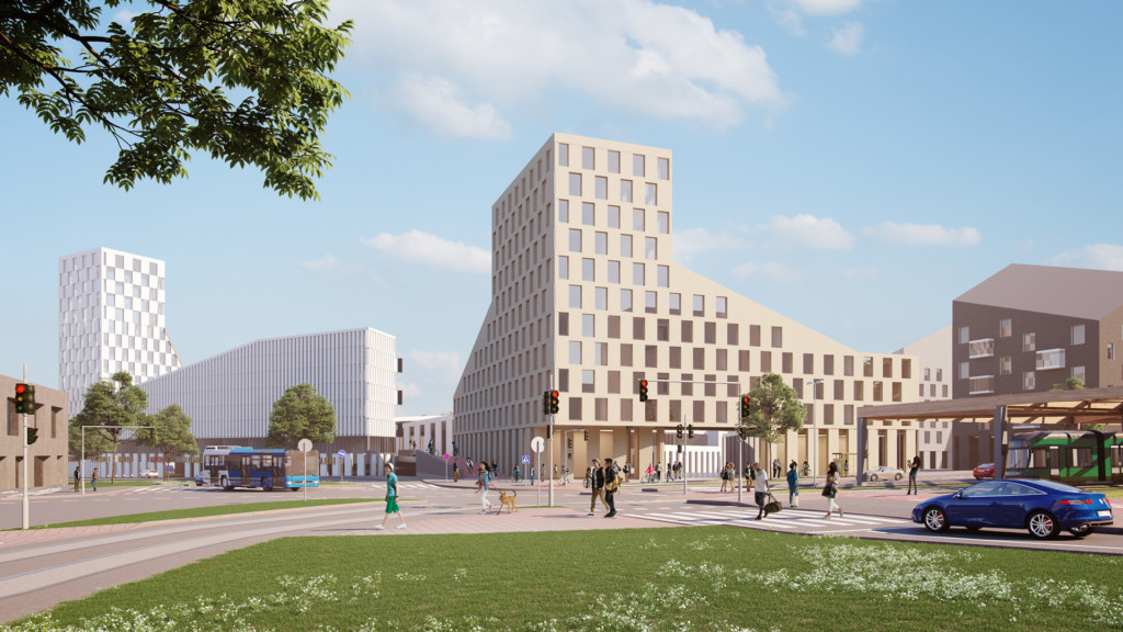 Kunniamaininta kilpailuehdotukselle Kun kaupungin läheisyys alkaa tuntua Kaleva-Hakametsä -paikalliskeskuksen ydinalueen kutsukilpailussa