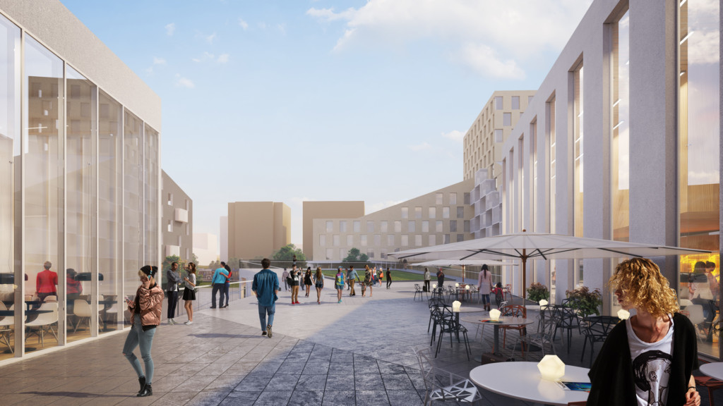 Kävelysilta yhteys Hakametsän hallin suunnalta päättyy Prisman toisen kerroksen korkoasemaan. Tästä korkoerosta on luotu paikalliskeskukselle selkeä identiteettitekijä. Liiketilat ja julkiset ulkotilat muodostavat jatkuvan laskeutuvan sekä monipolvisen tilasarjan. Tämän tilasarjan yhteyteen sijoittuu palveluita ja kohtaamisen tiloja. Sarvijaakon-aukion aseman kohdalla korttelirakenne aukeaa Prisman suuntaan. Hallituilla avauksilla muodostetaan ratikkapysäkistä asema pelkän pysäkin sijaan ja otetaan asema osaksi paikalliskeskusta.