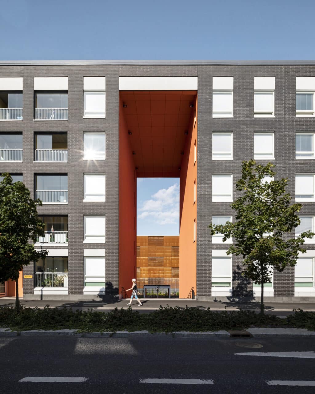 Suuri kulkuaukko rakennuksessa johtaa Keimolantieltä sisäpihalle ja alueen läpi kulkevaa keltasafiirinpolkua reunustaa matalampi rakennusosa. Tänne sijoittuvat niin imujätekeräyspiste kuin kerhotilatkin. Korttelin taiteesta vastasi Berry Creatice Oy. Kaisa Berry suunnitteli ja seppämestari Jouko Nieminen toteutti ”taidekaiteen” suureen porttikäytävään.