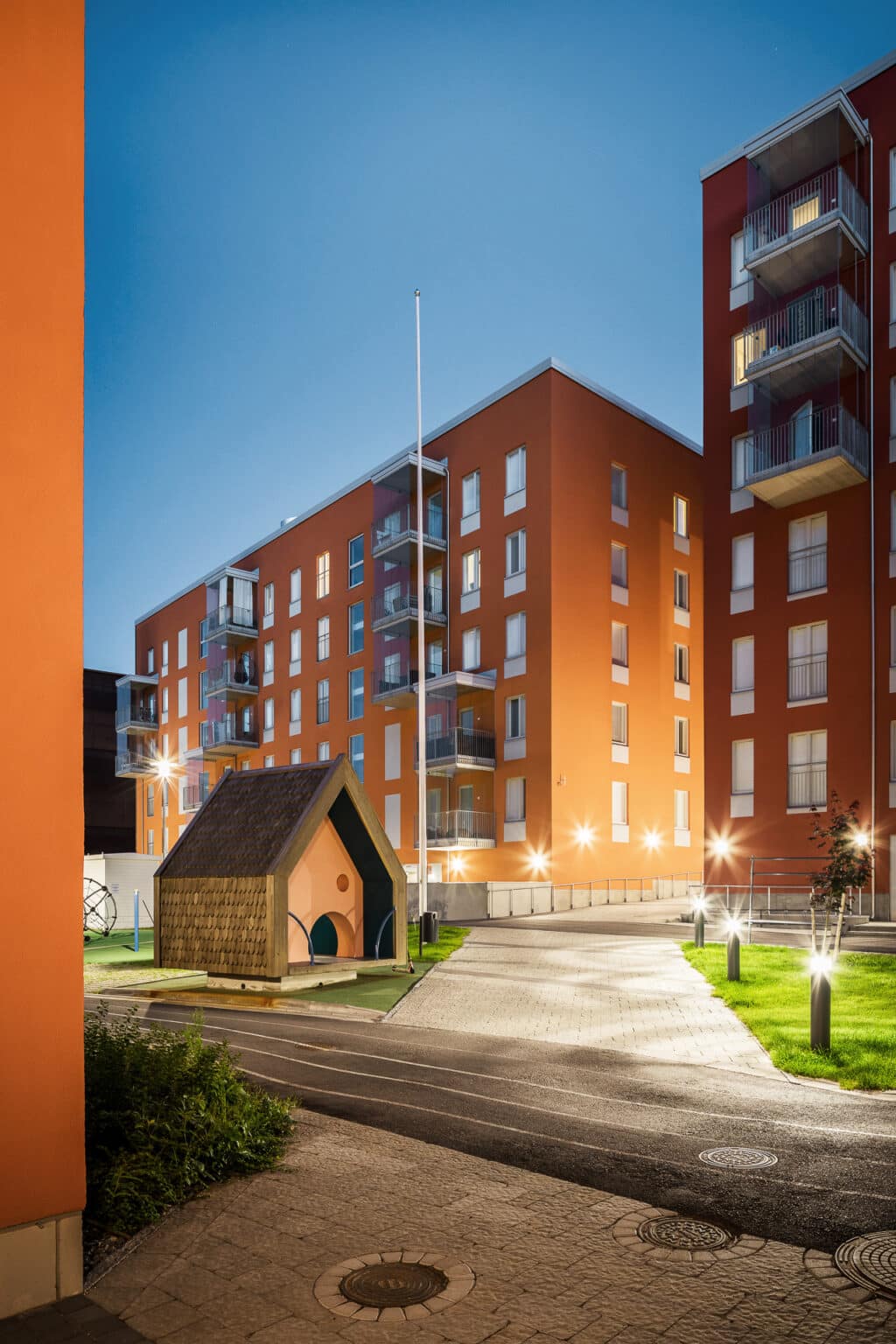Berry Creative on vastannut kaikkien hankkeidemme taideaiheista. Täällä pihan teema oli leikki ja sieltä löytyy mm. juoksurata ja taidekatos ”Stuga”.