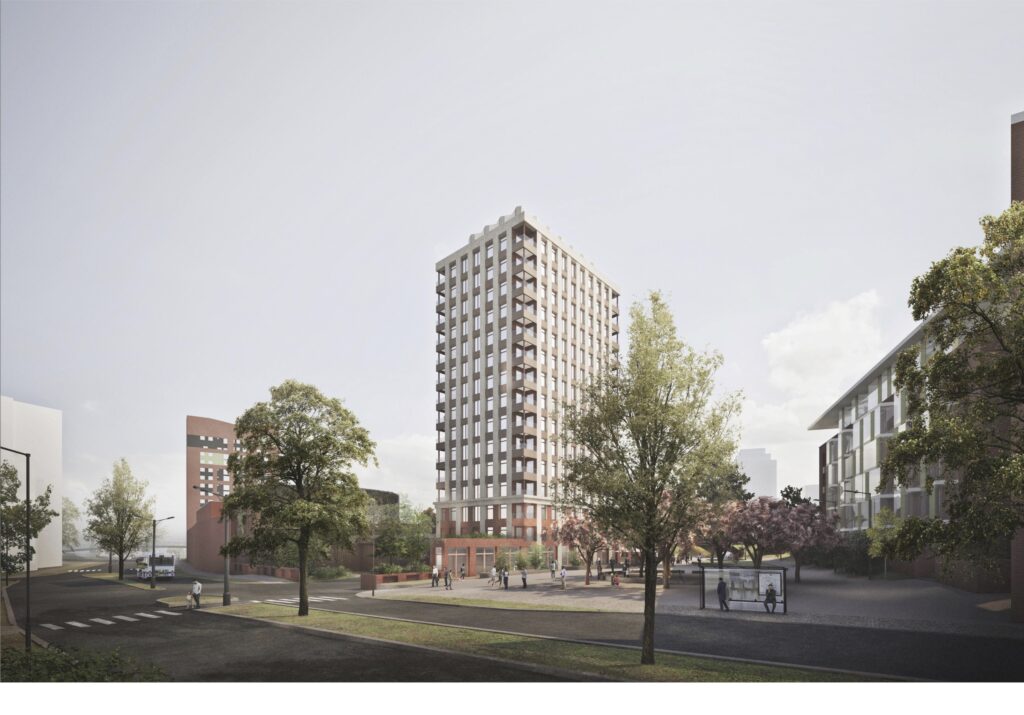 Rakennusjoukko piirtää tunnistettavan siluetin radan suuntaan, mutta katutaso pysyy ihmisen mittakaavassa. Vaihteleva rytmi, lämmin materiaalimaailma ja vehreys tekevät ympäristöstä rennon ja helposti lähestyttävän. Laajaniitynaukio vahvistuu arjen olohuoneena, ja reitti aukiolta asemalle on selkeä ja miellyttävä kaikkina vuodenaikoina.