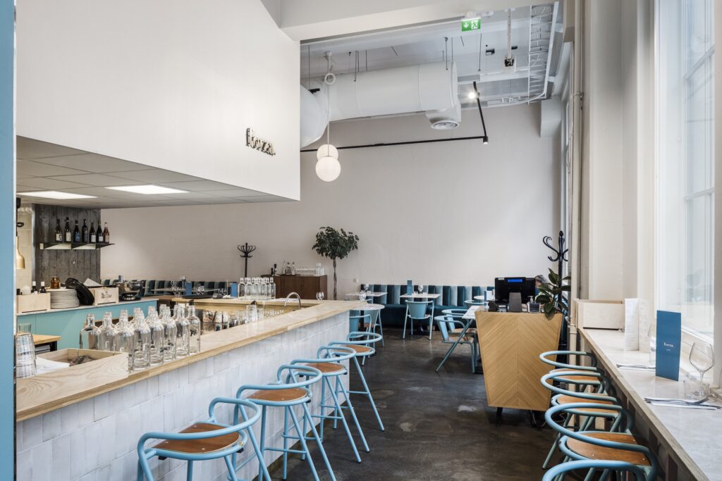 Ravintoloiden rakentaminen toteutettiin kahdessa vaiheessa. Ensimmäisessä vaiheessa Telakkakadun ja Pursimiehenkadun kulmaukseen rakennettiin kaksikerroksinen leipomo-ravintola ja pizzeria, johon tuotiin aito, puulämmitteinen pizzauuni Italiasta. Toisessa vaiheessa rakennettiin Telakkakadun varteen kaksisalinen elokuvateatteri, jonka konseptina on tarjota katsojalle ravintolapalveluja leffan katselun oheen, sekä korttelibaari, jonka yhteydessä toimii myös pienimuotoinen omatoimipesula.