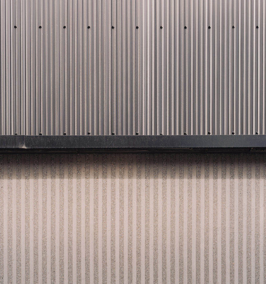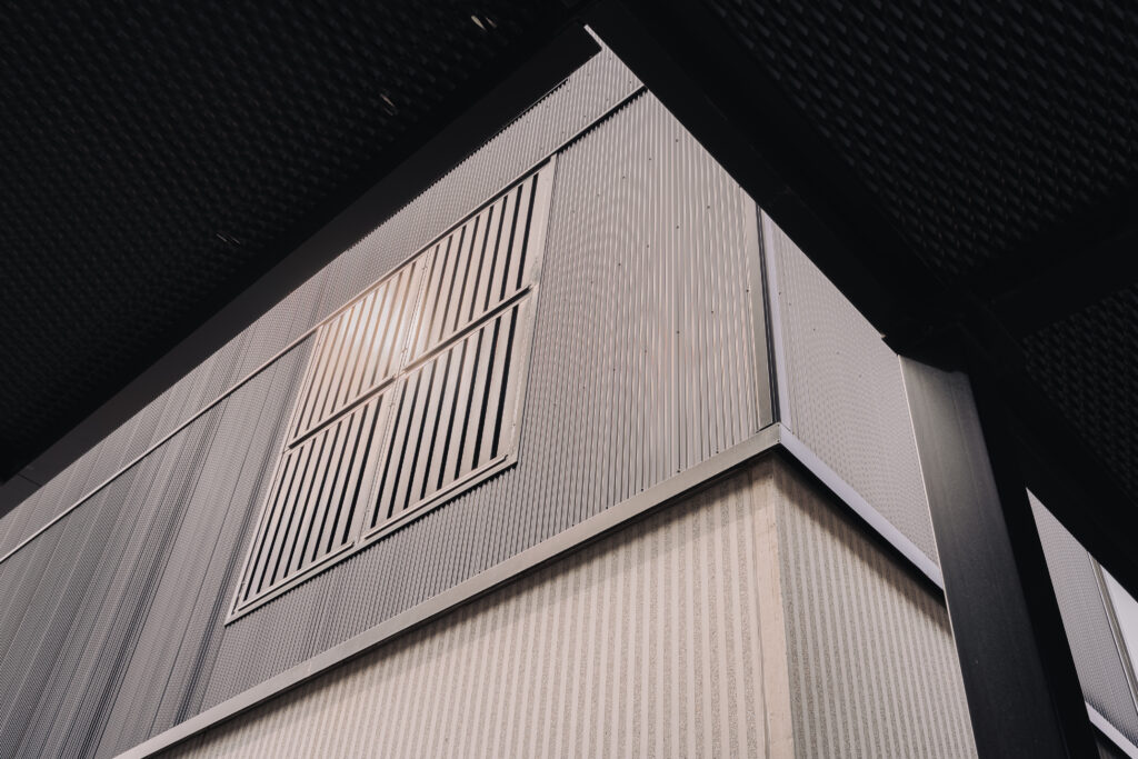 Rakennuksen graafinen raidallinen betoni, tiheä aaltoinen pystyyn asennettu profiilipelti ja sileä julkisivukasetti tuovat vaihtelua julkisivun minimalistiseen ilmeeseen. Rakennus on rauhoittava elementti tiiviisti rakennetussa ympäristössä, jonka minimalistinen julkisivu on rytmitetty ja avattu isojen lasiseinien avulla. Katolla, meluseinän takana, sijaitsevat tekniset laitteet, kuten varavoimakoneet, jotka on verhoiltu osaksi rakennuksen arkkitehtuuria.