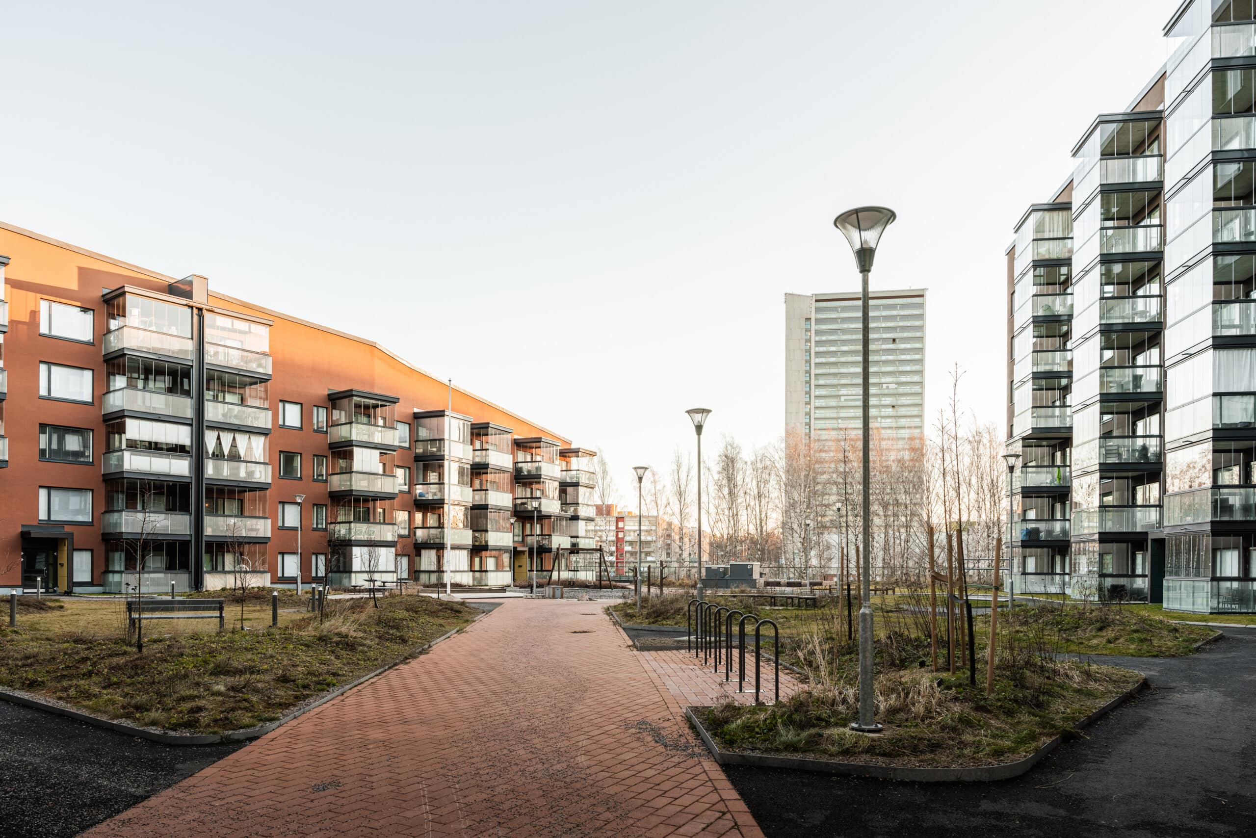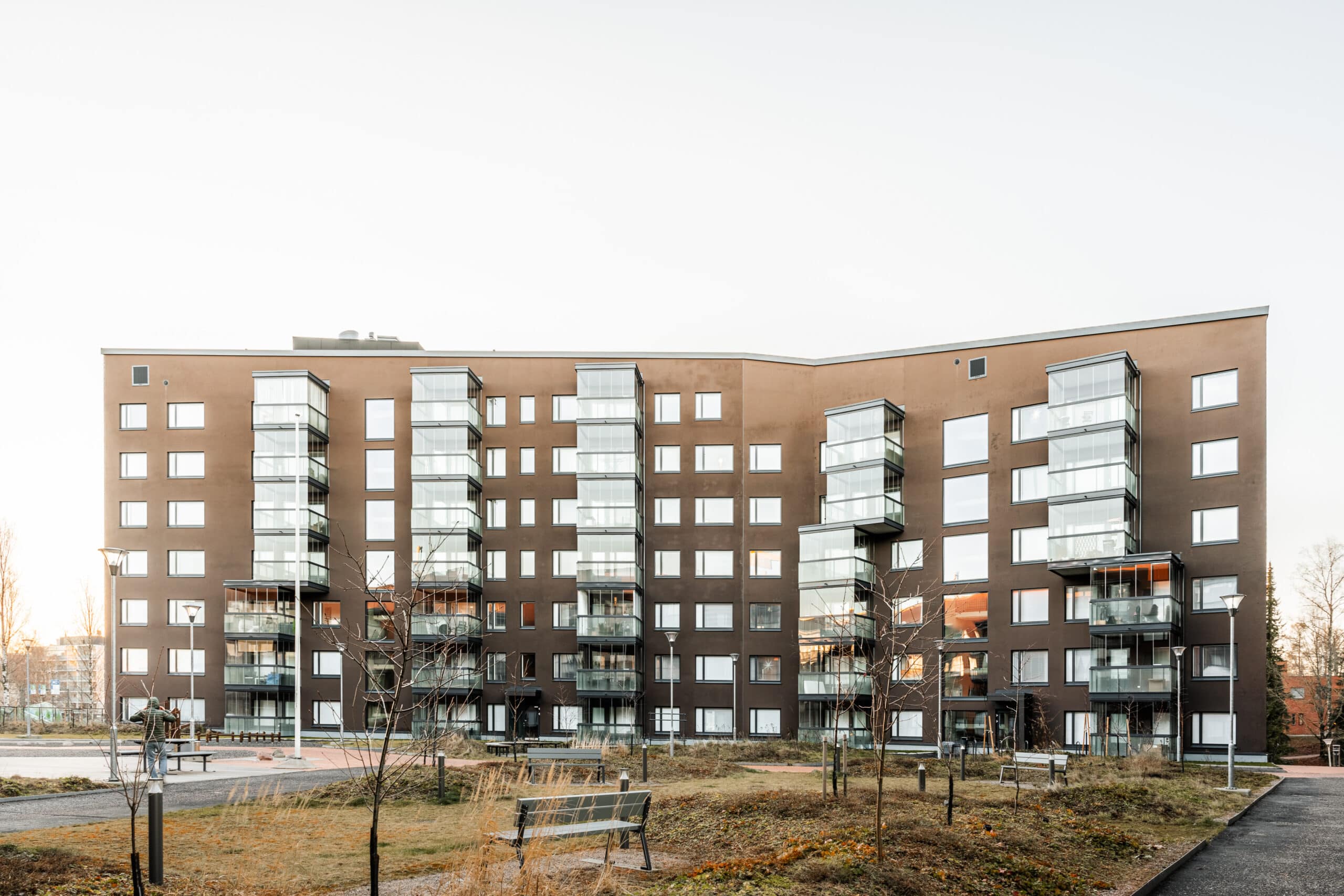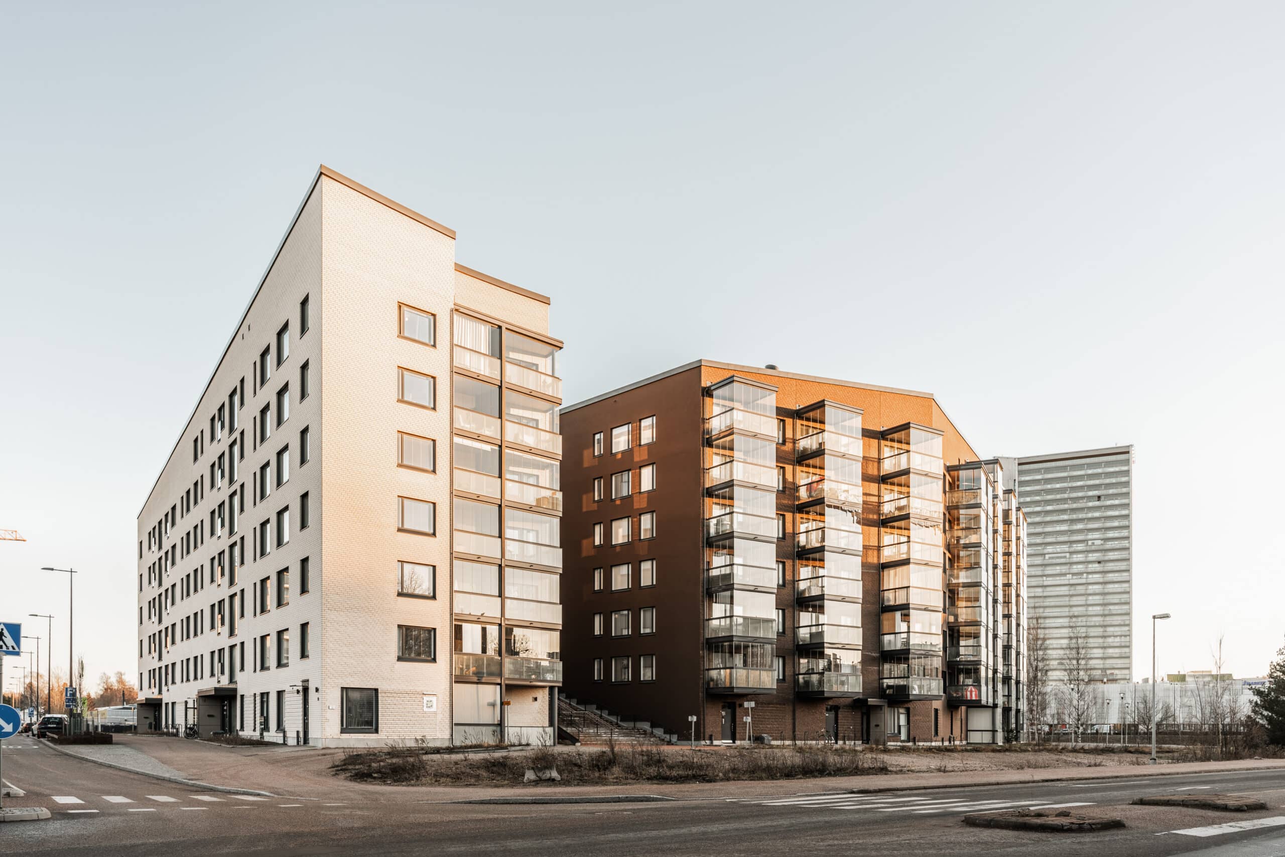 Rakennusmassojen korkeudet nousevat viidestä kerroksesta kahdeksaan kerrokseen ja rakennusten räystäslinja laskee kaltevasti alaspäin kerrosmäärien pienentyessä. Rakennusten julkisivut ovat suunniteltu kestäviä ja laadukkaita materiaaleja käyttäen. Ulkokehän julkisivut ovat paikallaanmuurattua tiiltä, joita on elävöitetty rapatuilla osilla. Sisäpihan julkisivut ovat villarapattuja, joka myös tuo vaihtelua ja persoonallisuutta rakennusten ulkonäköön.