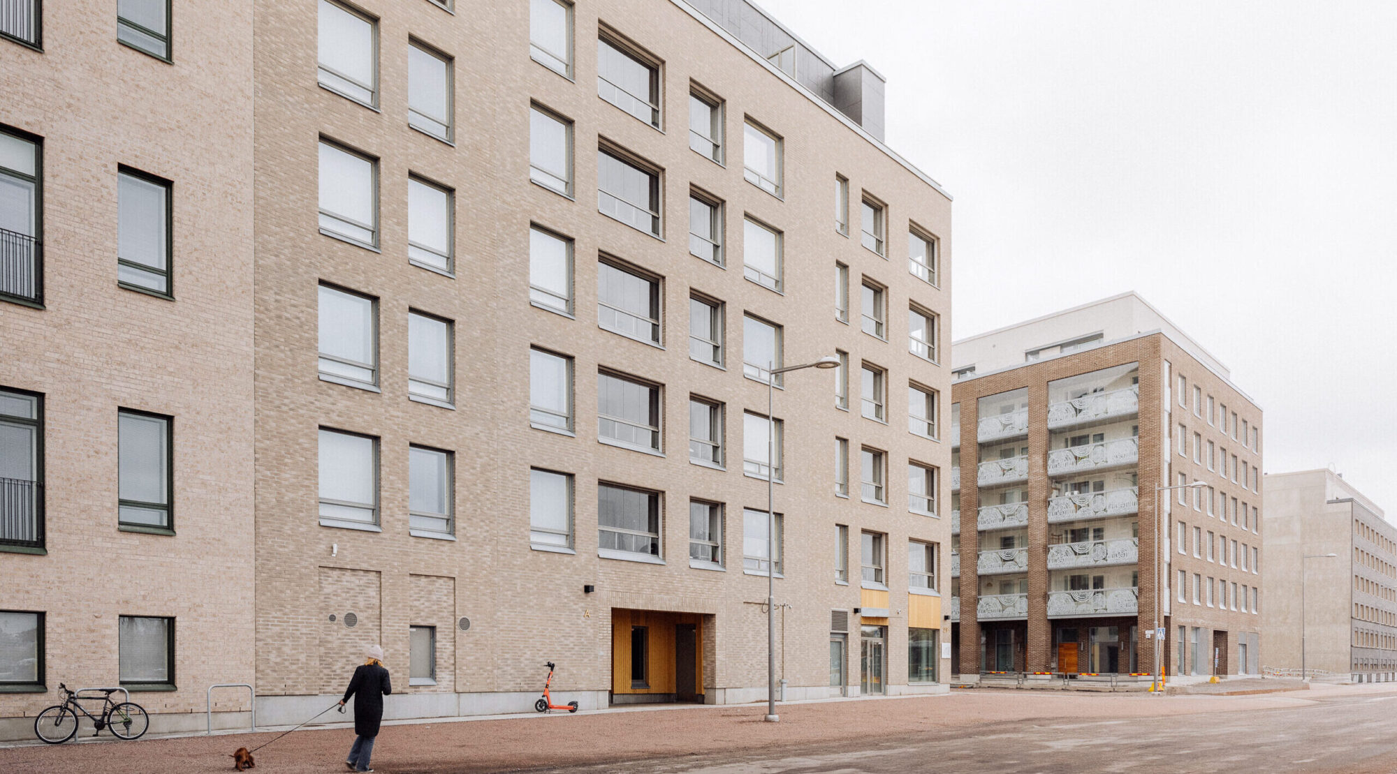 Kadun puoleiset julkisivut muodostuvat pehmeän harmaan sävyisestä puhtaaksi muuratusta tiilipinnasta sekä lasitetuista parvekkeista. Sisäänkäyntisyvennykset ovat puuverhoiltuja, kuten myös liiketilan ikkunoiden ja yläpuolella olevien parvekkeiden välinen osa. Rakennuksien 7. kerros on katujen puolella sisäänvedetty asemakaavan mukaisesti. Sisäänvedon myötä ylimmän kerroksen asunnoilla ja yhteistiloilla on käytössään omat terassit.