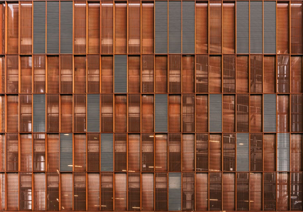 The main objective of the plan is to create a peaceful and sustainable urban space in accordance with the local plan. The facades of the office building facing the streets are made of brick laid on site and are opened up in a clear rhythm with vertical windows, which enlarge into display windows on the lower floors, creating excellent operating conditions for the business premises. The brick-clad facades of the parking facility are connected to the office building on the 1st floor and stairwells. The corten steel facades of the upper floors break this pattern, creating a counterpoint to the organized architecture, but matching it in terms of color. Great importance has also been placed on longevity in terms of flexibility for conversion. One office floor can be divided between seven users.