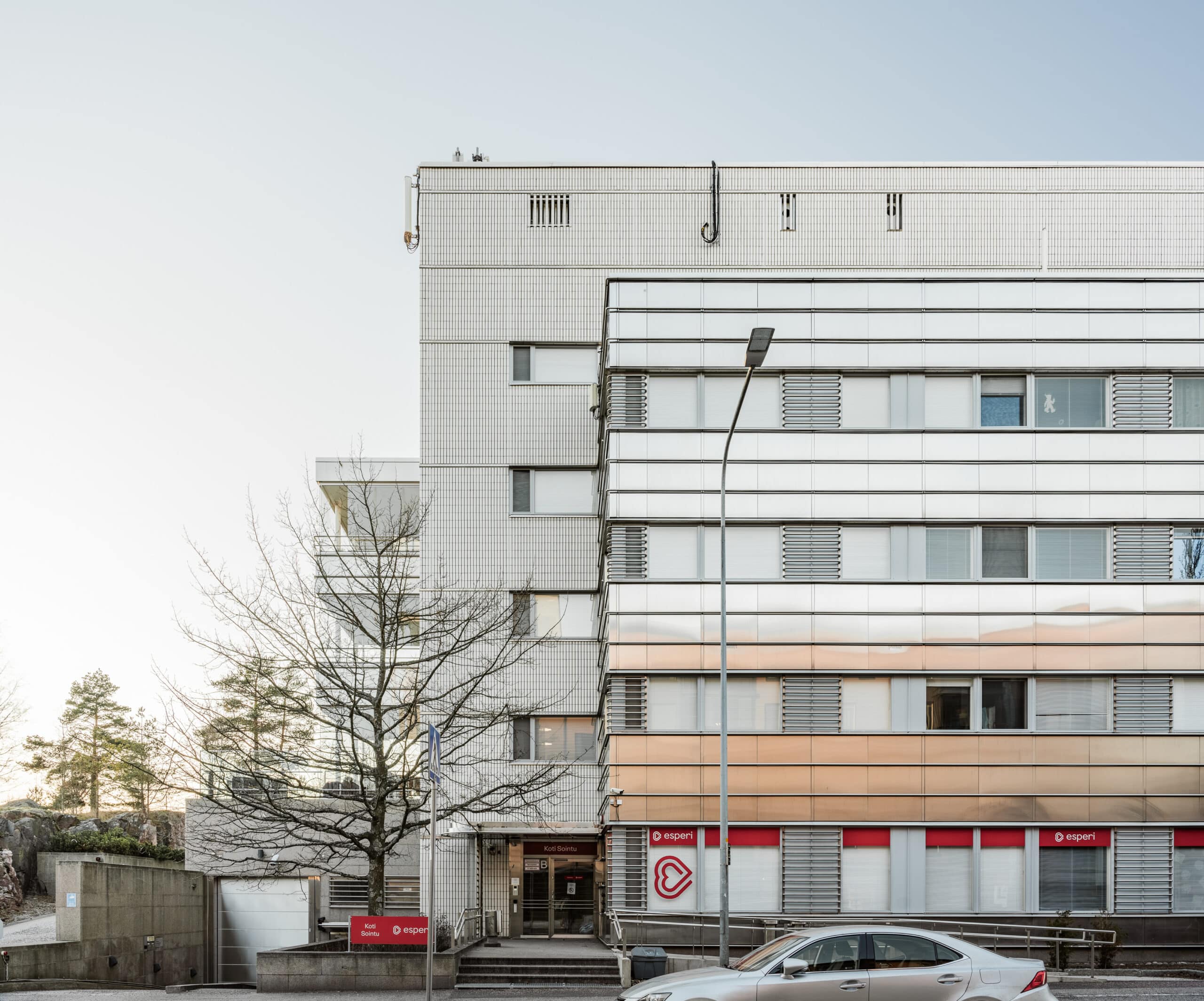 Located on a rocky shoreline in Herttoniemi, the late-1980s office building was underused and in need of refurbishment. New uses alongside office functions were considered for the property. By analysing the area’s age structure, service offering, and connections, a need for care services in the area emerged.