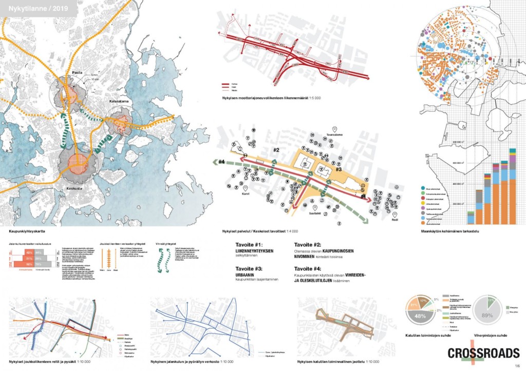 Kaupungissa olennaista on saavutettavuus sekä kytkeytyminen. Junatiellä alueanalyyseissä tutkittiin kaupunkirakenteen saavutettavuutta ja tunnistettiin kipupisteet mitkä estävät kaupunkirakenteen kytkeytyneisyyttä. Analysoimalla samanaikaisesti olemassa olevan katutilan aktiivisuutta sekä mm. katutilojen jaottelua materiaalien suhteen, saavutettiin vähitellen viitekehys mitä kaikkien suunnitteluratkaisuiden tuli seurata.