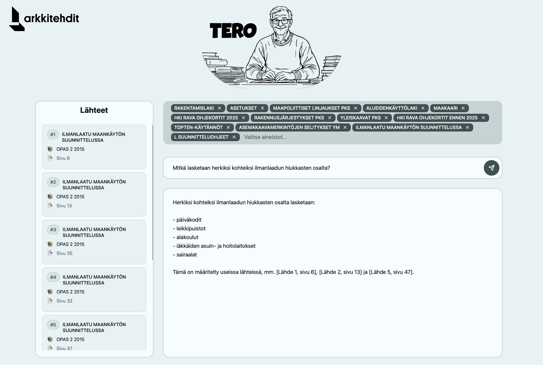 Tapaa Tero, uusin tekoälyavustajamme. Tero on asiakeskeinen mutta avulias heppu. Tero rakastaa regulaatiota, asetuksia ja sääntöjä, jotta meille ja asiakkaillemme jäisi enemmän aikaa suunnitteluun ja kuluisi vähemmän aikaa murehtimiseen.