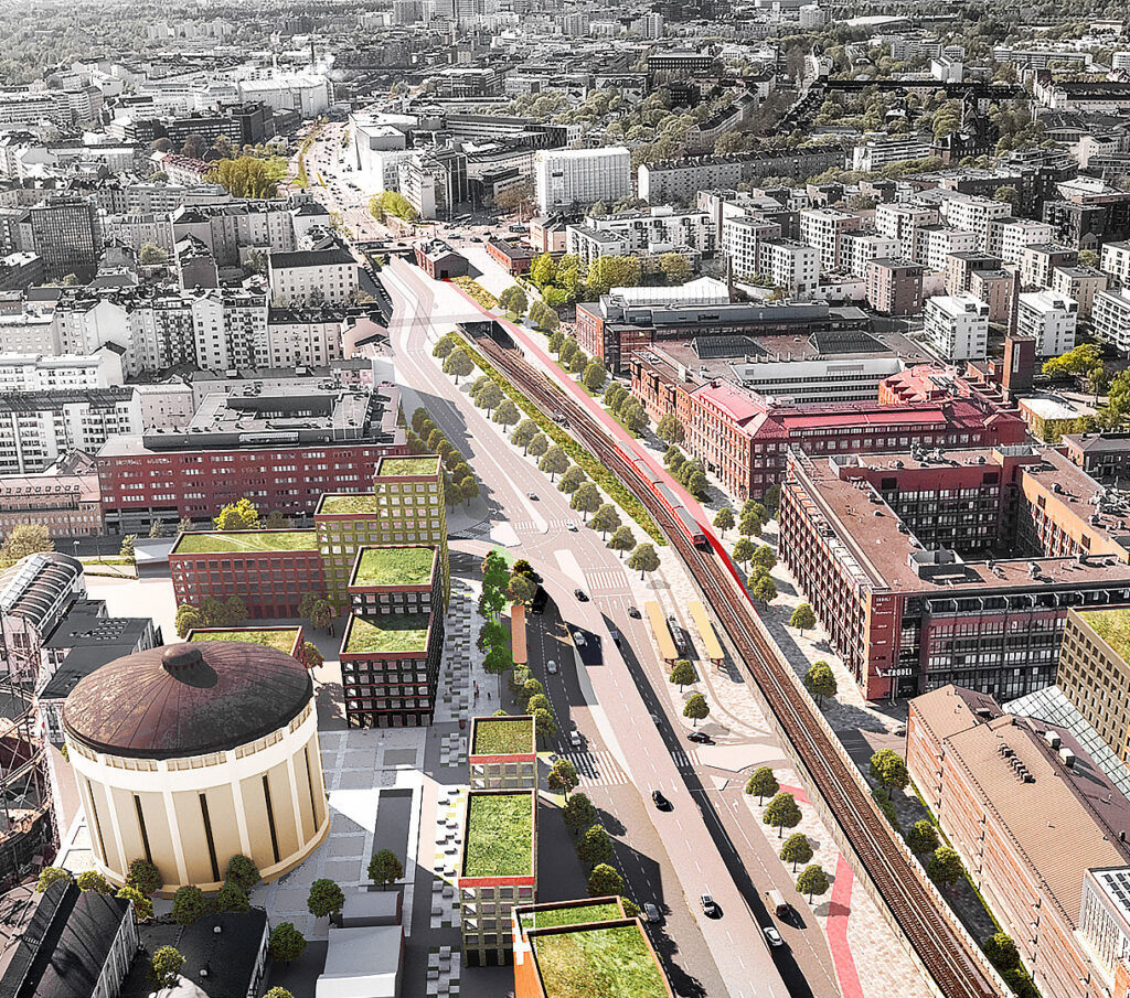 Junatien projekti on kutsukilpailuvoitto, jonka pohjalta laadimme kaupunkisuunnitelman Junatien sekä Teollisuuskadun alueelle osana alueen kaavarunkoa. Tuloksena oli suunnitelma, missä kapunkirakenteen kytkeytyneisyys paranee huomattavasti, vaikeat liikenneratkaisut ovat muuttuneet kaupunkitilaksi ja laskennallinen kaupunkivihreän määrä on lisääntynyt. Lisäksi kaupunkikulttuurin edellytykset paranevat selkeytyneiden julkisten tilojen myötä, jotka mahdollistavat Suvilahden sekä Teurastamon alueen aktiivisen yhteisen toiminnan. Suunnitelmien arvopohja tulee meillä tarkasta analysoinnista sekä kattavasta asiantuntija-arviosta.